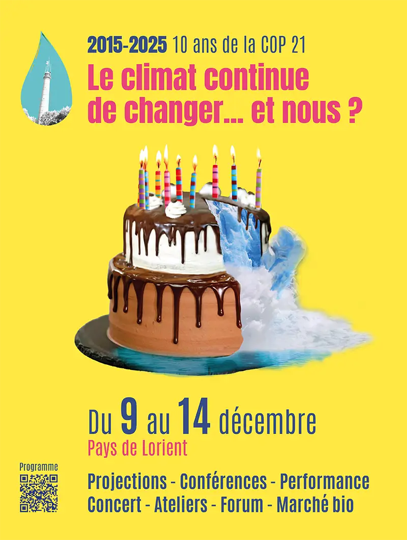 La semaine prochaine, avec une dizaine de partenaires de l’ESS, on fête les 10 ans de la COP 21 vu du Pays de Lorient. Projections, conférence, performances, concert, ateliers et marché bio, chacun s’est emparé du sujet à sa façon !
