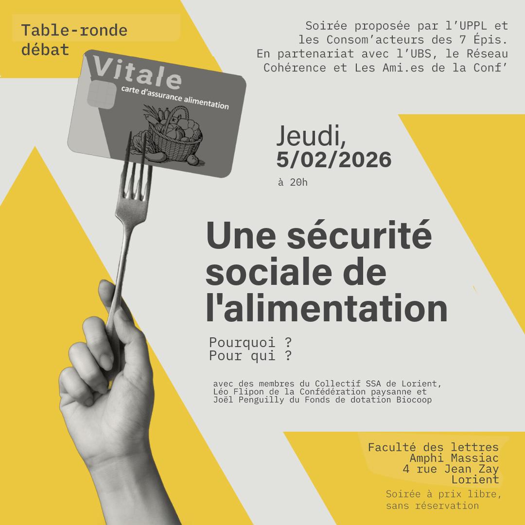 Une sécurité sociale de l’alimentation ? Pour qui ? Pourquoi ? Découvrez le projet lorientais, le temps d’une table ronde organisée à l’UBS, le jeudi 5 février à 20h.