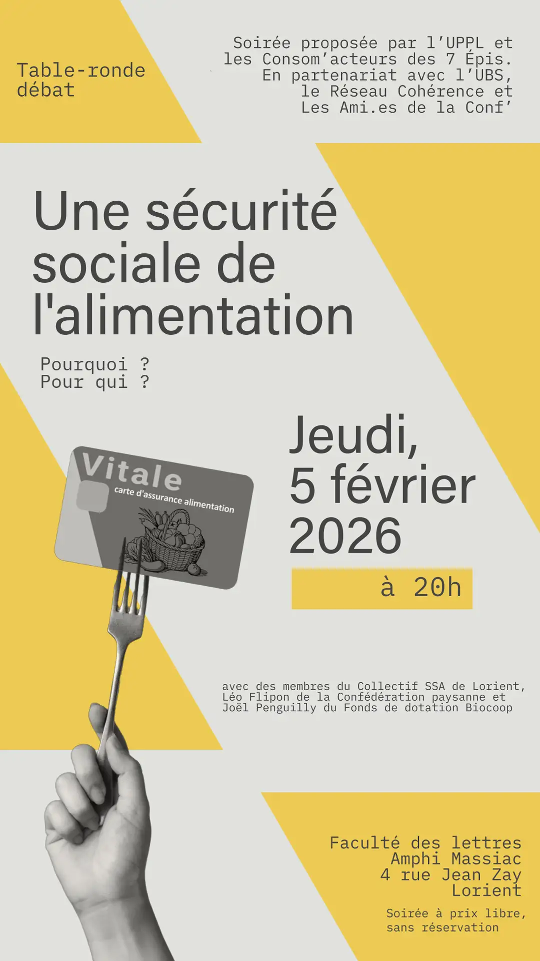 Une sécurité sociale de l’alimentation ? Pour qui ? Pourquoi ? Découvrez le projet lorientais, le temps d’une table ronde organisée à l’UBS, le jeudi 5 février à 20h.
